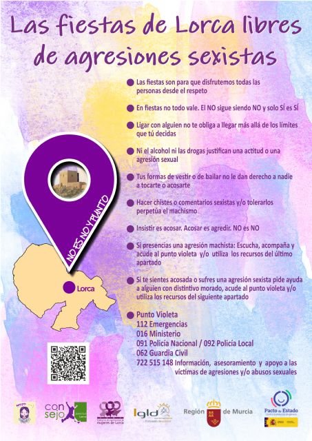 "Esta campaña se va a financiar con cargo a los créditos recibidos del Ministerio de Igualdad, Secretaría de Estado de Igualdad y contra la Violencia de Género, a través del Pacto de Estado en Materia de Violencia de Género y cuenta con la colaboración de la Federación de Organizaciones de Mujeres (FOMLorca), del Consejo de la Juventud y de la Asociación Mujolor, entre otros.