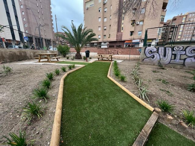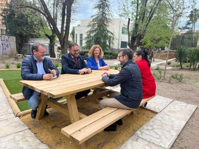 El alcalde de Lorca, Diego José Mateos, ha visitado, esta mañana, junto a los concejales de Parques y Jardines, Contratación y Educación, Antonio Navarro, Isidro Abellán y Antonia Pérez el nuevo espacio de la zona ajardinada del IES Ibáñez Martín.