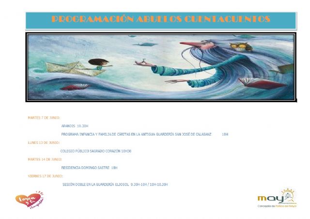 Las visitas serán el 13 de junio en el Colegio Sagrado Corazón; el 14 de junio en la Residencia Domingo Sastre y el 17 de junio, sesión doble de Abuelos Cuentacuentos en la Guardería Eliosol.