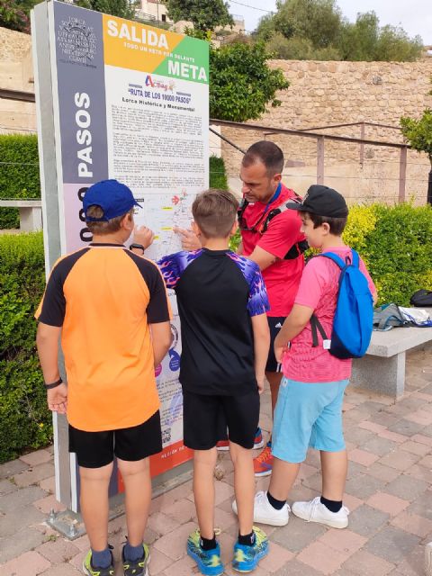 Las concejalas de Deportes y Educación del Ayuntamiento de Lorca, Irene Jódar y Antonia Pérez, han inaugurado, esta mañana, junto a los promotores de la iniciativa, los maestros murcianos María Sánchez Baño y Juan Eugenio Alcaraz, la Ruta de los 10.000 pasos por la Lorca histórica monumental incluida en la red de rutas del programa Escuelas activas, que promueve combatir el sobrepeso infantil a través del ejercicio físico y una dieta saludable.