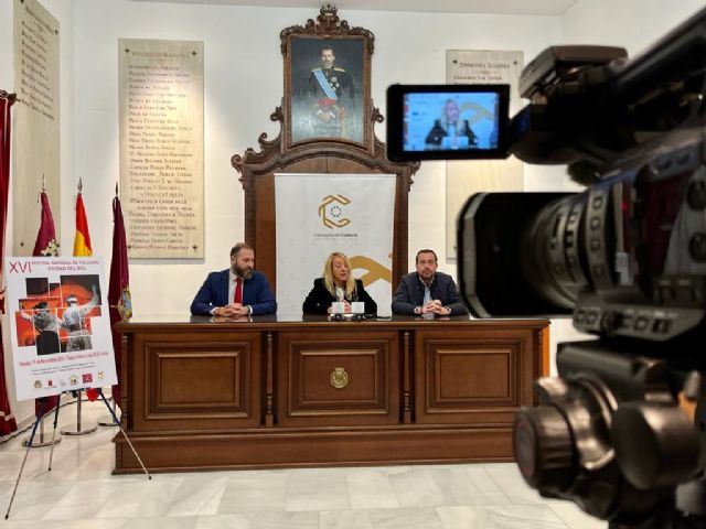 La concejala de Cultura del Ayuntamiento de Lorca, María Ángeles Mazuecos, ha presentado, esta mañana, junto al vicepresidente de Coros y Danzas Virgen de las Huertas, Luis González, y al director general de Calidad Turística, Carlos Peñafiel, la décimo sexta edición del Festival Nacional de Folclore 'Ciudad del Sol', que se celebrará este próximo sábado, 19 de noviembre, en el Teatro Guerra, a partir de las 20 horas de la mano del grupo de Coros y Danzas Virgen de las Huertas.