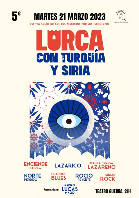 El Ayuntamiento de Lorca organiza a través de la concejalía de Cultura una Gala Benéfica a favor de Siria y Turquía para el próximo martes, 21 de marzo, en el Teatro Guerra