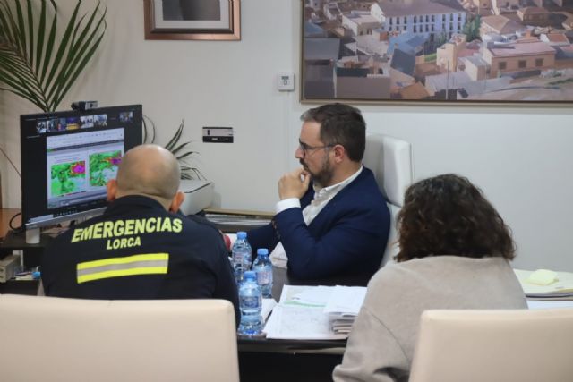 Mateos Molina ha recordado que "el municipio de Lorca estará a partir de esta madrugada en alerta nivel naranja por lluvias persistentes por lo que lo más importante es garantizar la seguridad de las personas y lo hacía en nivel amarillo este lunes por lo que procedíamos a una reunión de coordinación con todos los servicios municipales implicados y la activación del Plan INNULOR en fase de preemergencia".