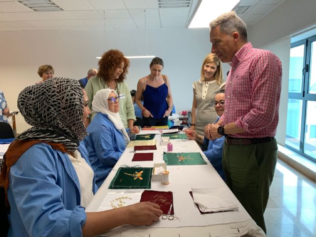 El Alcalde de Lorca ha visitado el taller municipal de bordados para conocer de primera mano el trabajo que realizan y ha dado la primera puntada de este nuevo proyecto que permitirá a las participantes adquirir habilidades y destrezas en esta técnica artesanal única en el mundo