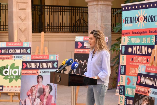 "No habrá que pagar en ningún concierto de la Feria". Así de contundente presentaba este lunes la Feria y Fiestas de septiembre la edil de Festejos, María de las Huertas García Pérez, que aseguraba que "el próximo mes es la particular 'cuesta de enero' para los lorquinos, ya que los más pequeños regresan al colegio con todo lo que ello lleva consigo de compra de uniforme, material escolar y deportivo, libros… Hemos querido que puedan disfrutar de los conciertos de la feria sin pagar ni un solo euro".