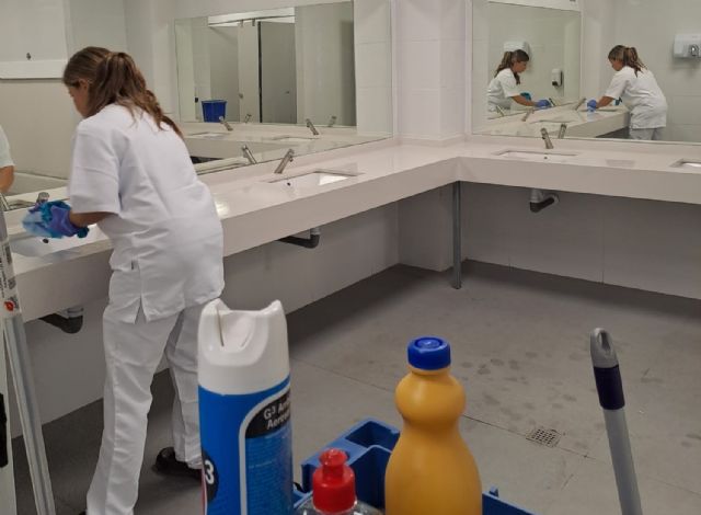 Añadir las más de 100 horas de trabajo dedicadas a la limpieza de los aseos del recinto ferial, así como de los camerinos instalados en los distintos montajes que han servicio para acoger los eventos musicales y otras atracciones en La Merced, Plaza de España y Huerto de la Rueda, por personal de la sección de Limpieza de Interiores.