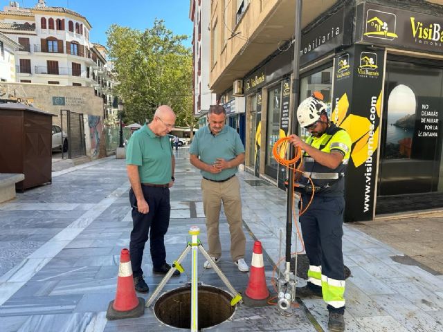 Ambos daban a conocer los trabajos de inspección de todo el sistema de alcantarillado de la ciudad, que se está intensificando este mes para verificar el buen estado de la red. Cabe recordar que "la función de este sistema de tuberías es evacuar las aguas residuales y pluviales y conducirlas a las estaciones de bombeo y depuradoras. Aguas de Lorca se encarga de que estén en buen estado, limpias y sin obstrucciones, para que puedan cumplir su cometido", añadía Ángel Meca.