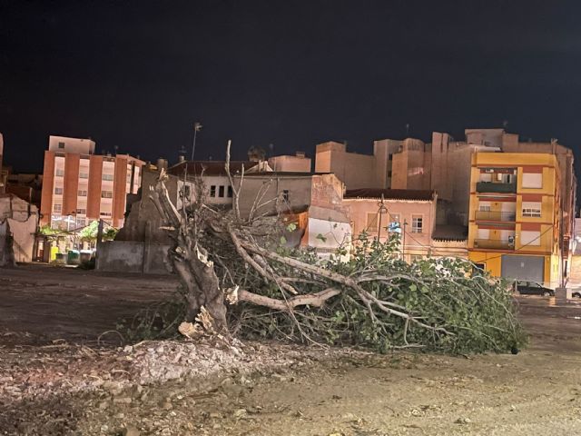 En la base de Emergencias de Zarcilla de Ramos el 'vendaval' rompía la puerta y parte de la valla y caían las ramas de la higuera del Barrio