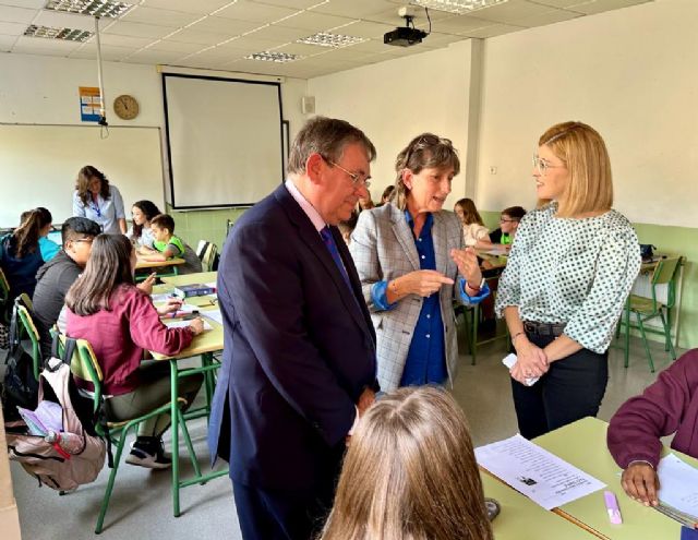 La edil de Educación, Rosa María Medina, ha asistido esta mañana al centro, junto al presidente del Consejo Escolar de la Región, José Francisco Parra Martínez, que ha querido visitar las instalaciones y conocer personalmente al equipo y la esencia del programa. Junto a ellos, el presidente de la FAMPA, Andrés Terrones; la directora, María del Carmen Rodríguez, y parte del profesorado y del alumnado, que han podido trasladar en primera persona las principales acciones y resultados.