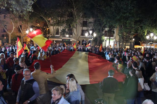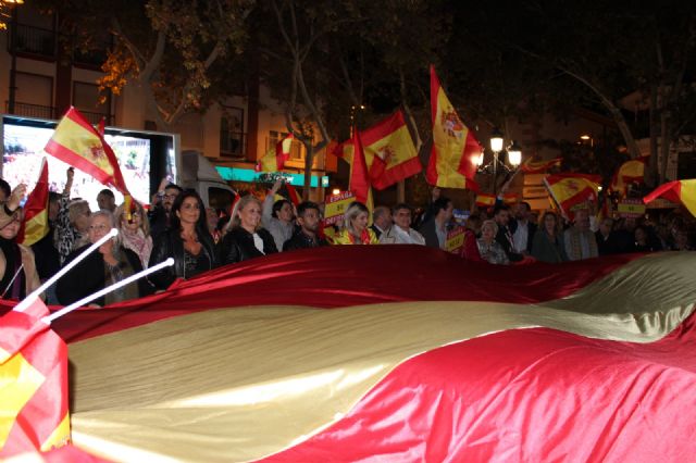 Juntos, unidos y con más fuerza que nunca los lorquinos han dicho alto, claro y rotundo "España no se vende, España se defiende", no a la amnistía y sí a la igualdad en la concentración pacífica convocada esta tarde por el Partido Popular