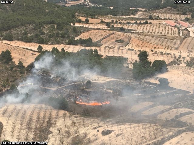 El incendio se ha dado por perimetrado a las 16:37 y estabilizado a las 17:15 retirándose los medios aéreos y la brigada helitransportada y quedando en la zona las brigadas terrestres y Protección Civil de Lorca.