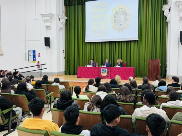 Durante la sesión, celebrada en el salón de actos del centro y a la que han asistido alumnos de 4° de ESO y Bachillerato, el Fiscal ha explicado al alumnado el significado y funcionamiento de la Fiscalía de la Comunidad Autónoma de la Región de Murcia y las funciones de los Fiscales, en general, y del Fiscal de Menores, en particular.
