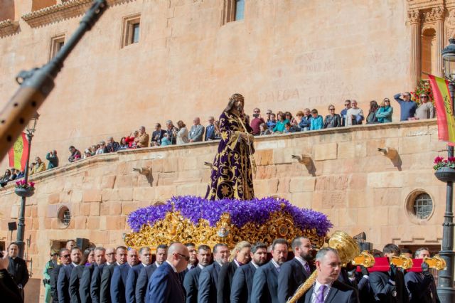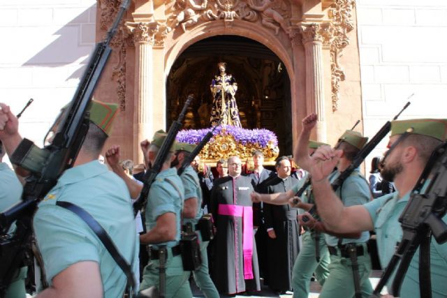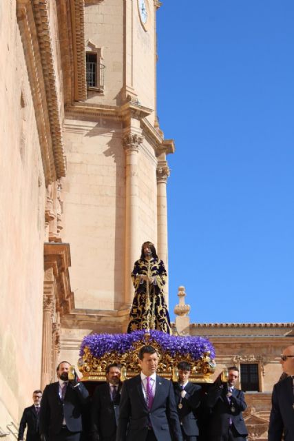 La celebración ha contado, de forma excepcional, con la presencia del Santísimo Cristo del Rescate que, a su fin, salía en andas por el conocido como “carrerón” hacia la Plaza de España ante la atenta mirada de cientos de lorquinos y al son del himno recién estrenado y creado para la ocasión, “Legión y Fe”, interpretado por la Agrupación musical Virgen de la Amargura.