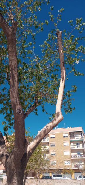 Sánchez ha explicado que los ejemplares a los que hacía referencia el edil del PSOE "presentaban una deficiencia estructural muy importante, con una resistencia por debajo del 30 por ciento, lo que los convertía en un peligro para los viandantes, especialmente para los niños que utilizan el parque infantil y los aficionados a la petanca que juegan a diario en este lugar".