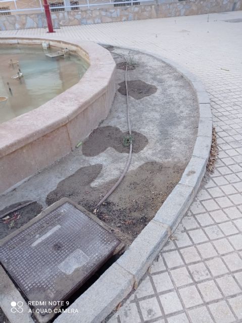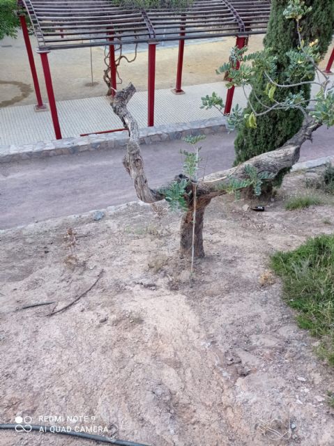 Sosa ha mostrado varias imágenes en las que tristemente se pueden ver algarrobos o granados secos o medio muertos, mientras que en otros lugares del mismo parque aparecen alcorques vacíos que se siguen regando y que llevan meses sin ser repuestos.