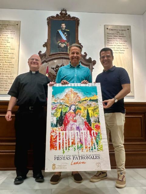 El cartel de este 2024, elaborado por Javi Martínez, muestra como motivo principal la imagen de la Virgen de las Huertas con diferentes vistas de la ciudad de Lorca