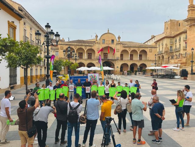El alcalde de Lorca, Fulgencio Gil Jódar, acompañado por el concejal de Deportes, Juan Miguel Bayonas; el director técnico de los JDG, José Luis Lozano; integrantes del comité organizador y representantes de los clubes deportivos, ha presentado en la mañana de este jueves, en la Plaza de España, el cartel de la cuadragésima quinta edición, la propuesta de eventos que se sucederán en los próximos días y al embajador de este año, el exconcejal de Deportes y docente de Educación Física, Francisco Félix Montiel Sánchez.