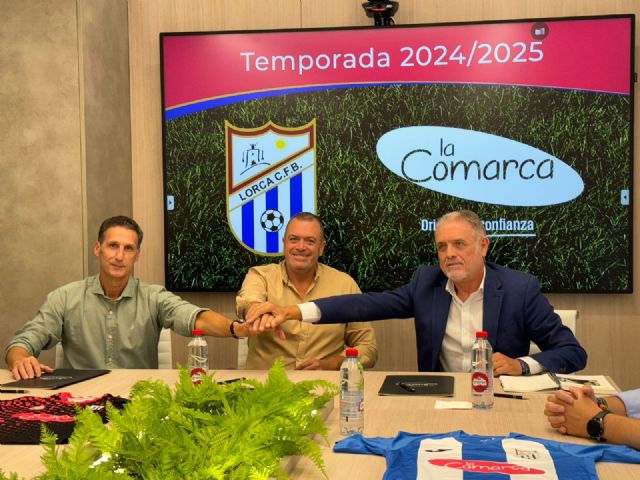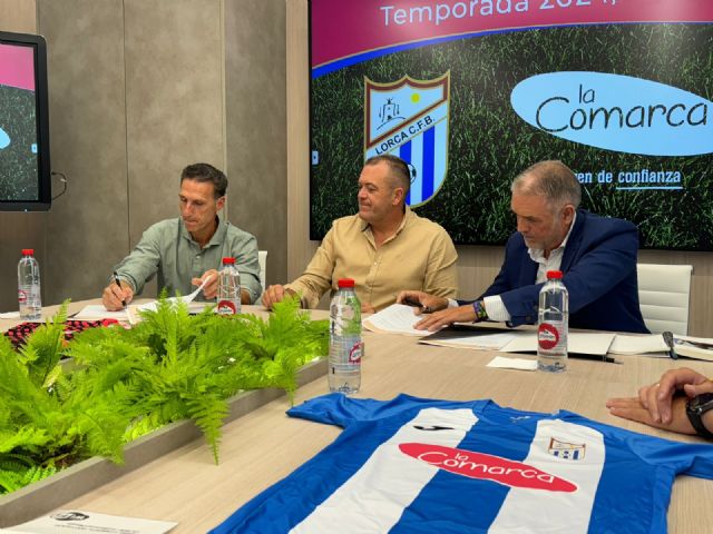 El Ayuntamiento de Lorca ha respaldado hoy la firma del acuerdo de colaboración entre el grupo empresarial La Comarca y el Lorca Club de Fútbol Base del que se beneficiarán esta temporada un millar de menores, gracias a la apuesta de la corporación cárnica por la promoción del deporte en la ciudad mediante la figura del patrocinio deportivo, tanto del club local como de la escuela. La firma del acuerdo ha tenido lugar esta mañana con la presencia de los ediles de Deportes y Talento Joven, Juan Miguel Bayonas y Antonio David Sánchez, respectivamente, que han felicitado a Antonio Sánchez, presidente del club, y a Francisco Salas, director de producción de La Comarca, por la consolidación del convenio de patrocinio deportivo puesto en marcha hace siete años.