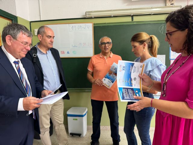 La concejal de Educación del Ayuntamiento de Lorca, Rosa María Medina, y el presidente del Consejo Escolar de la Región de Murcia, José Francisco Parra, han visitado el Colegio San Cristóbal, centro educativo galardonado en los III Premios CERM edición 2024 en la categoría de "alumnado", para felicitarlos por el proyecto intergeneracional 'Vidas que se unen', e informarles sobre este premio y el acto de entrega del mismo que tendrá lugar el día 19 de octubre en Caravaca de la Cruz durante el desarrollo del XX Encuentro del CERM.