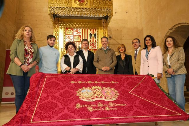 Lo ha hecho en la antigua iglesia de Santa María la Mayor, sede del ciuFRONT, Museo Medieval de Lorca, en compañía del presidente de la Federación San Clemente, Luis Antonio Torres del Alcázar; una jornada en la que, además del más del medio centenar de actividades, se ha presentado el nuevo Pendón con el que cuenta la Federación, una exquisita pieza bordada conforme a la técnica de la seda tendida y canutillo de oro, bajo la maestría de las profesionales del taller de Silvia Teruel y la dirección de David Torres del Alcázar.