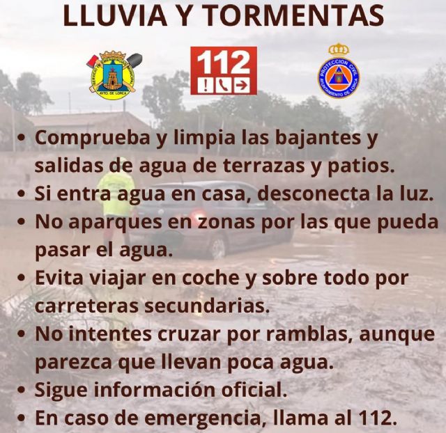 "Del mismo modo, les pedimos a los ciudadanos que sigan las indicaciones tanto del Servicio Municipal de Emergencias como del Ayuntamiento de Lorca a través de la web www.lorca.es y las redes sociales Facebook, Instagram y Twitter. De manera general, es muy importante permanecer atento a las informaciones oficiales transmitidas a través de las emisoras de radio y de otros medios digitales, y seguir las indicaciones que se den y, en caso de emergencia, contactar siempre con el 112", ha concluido José Martínez.