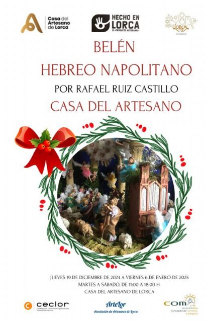 La edil de Comercio y Artesanía del Ayuntamiento de Lorca, Mayte Martínez, ha presentado, junto a Martín Lario, presidente de ARTELOR, la exposición temporal "Belén hebreo napolitano", que muestra la obra del artista Rafael Ruiz Castillo, artesano vocacional de la tradición belenista, quien ha cedido una variada representación de figuras de su producción.