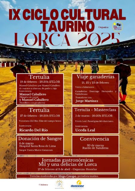 Tendrá lugar del 19 de febrero al 3 de abril y traerá a Lorca a grandes nombres del mundo del toro como Victoriano del Río, José Ignacio Uceda Leal o Manuel Caballero (padre e hijo)