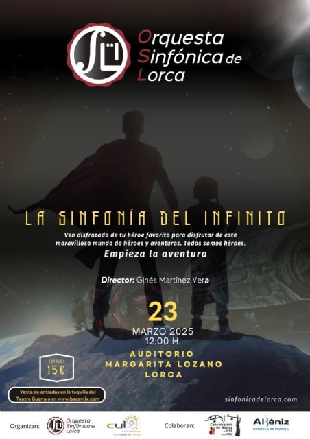 Durante su intervención, el edil ha invitado a todos "a sumarse a este viaje musical épico con 'Sinfonía del Infinito: Héroes y Aventuras', un espectáculo único que acercará al espectador a las historias más emocionantes de la música, el cine y la vida real, con un programa compuesto por canciones de títulos de Marvel y Disney". Una nueva actuación del conjunto formado por medio centenar de profesionales y músicos amateurs vinculados a nuestro municipio y al Conservatorio Narciso Yepes que, bajo la batuta de Ginés Martínez, interpretarán melodías de sobra conocidas, y que van desde galaxias lejanas hasta reinos fantásticos, historias marcadas, en definitiva, por héroes inolvidables. "Con el "Concierto en familia con la OSL" reviviremos la magia de Star Wars, Indiana Jones, Juego de Tronos, Marvel, Superman, Thor, Iron Man, Capitán América, Aladdín y muchos más, con piezas que evocan grandes hazañas y personajes icónicos".