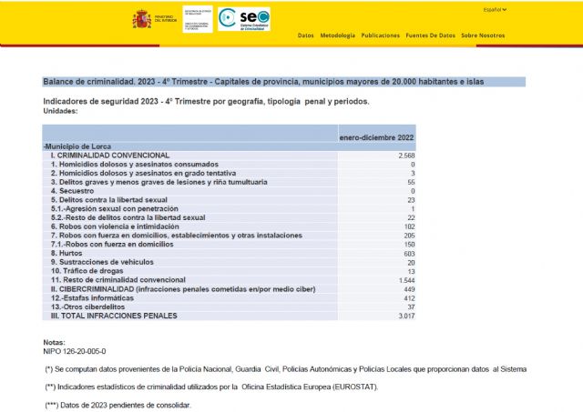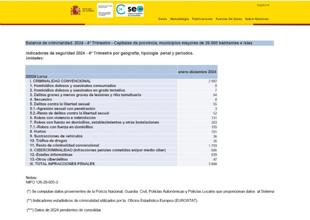Ruiz: "Nos llama profundamente la atención la gráfica que el señor Bayonas mostró en su comparecencia, ya que se trata de una representación manipulada e inexistente en el portal del Ministerio. La sensación de inseguridad ha crecido considerablemente, y los lorquinos y lorquinas no perciben la presencia policial necesaria"