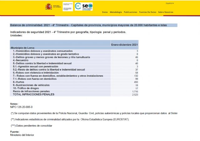 Además, ha denunciado que el equipo de gobierno lleva dos años atribuyendo la sensación de inseguridad y los hechos delictivos ocurridos en Lorca a la delegación del Gobierno y al Gobierno de España. "Ahora, a la mínima mejoría en los datos, que además están manipulados, saca pecho y se atribuye los méritos como si fueran resultado de su gestión", ha criticado Ruiz.