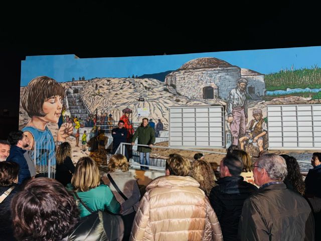 El alcalde de Lorca, Fulgencio Gil, ha visitado en la tarde de este miércoles, el nuevo mural que, desde este mes de febrero, viste la fachada del local social de la pedanía de Río