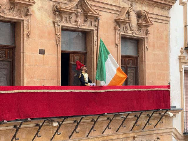 Ha recordado que, en homenaje a San Patricio, día de la batalla, se levantó una iglesia sobre la vieja de San Jorge, que, para los lorquinos siempre será la Colegiata de San Patricio. Este día está repleto de simbolismo para los lorquinos. Se iza la bandera de Irlanda desde los balcones de las Salas Capitulares de la antigua colegial, pero también es en este día cuando se interpretan por primera vez en un acto oficial 'Las Caretas' y 'El Tres', los himnos del Paso Azul y Paso Blanco. Este año, se han escuchado antes de los 'Anuncios' y del pregón de la Semana Santa, por aquello de celebrarse nuestra 'Semana de Pasión' bien entrada la primavera".