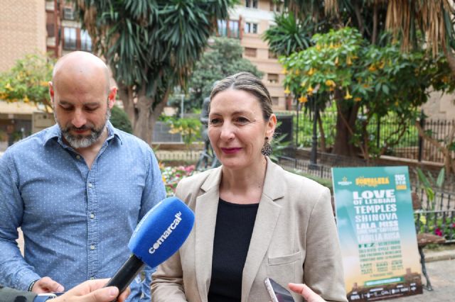 La concejal de Feria y Fiestas del Ayuntamiento de Lorca, María de las Huertas García, junto al promotor del festival, Carlos Caro, han presentado este jueves las primeras actividades gratuitas que formarán parte de la segunda edición de 'Fortaleza Street', una nueva marca integrada dentro del Festival Fortaleza Sound.