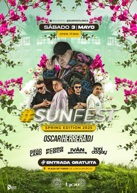 Y ha añadido que "para ello, el 'Sunfest Spring Edition' contará con la participación de los mejores djs locales entre los que se encuentran Koni Deejay, Iván Belmonte, Diego Cano y Pedrofeder. Además, este año como novedad contaremos con la presencia de Óscar Herrera, dj internacional que ha participado en numerosos eventos por todo el mundo y que ha logrado establecerse como uno de los artistas más influyentes de la actualidad. Así, este acto será una oportunidad única para ver a estos artistas lorquinos y a este dj internacional juntos en un escenario y disfrutar de la mejor música y los mejores temas".