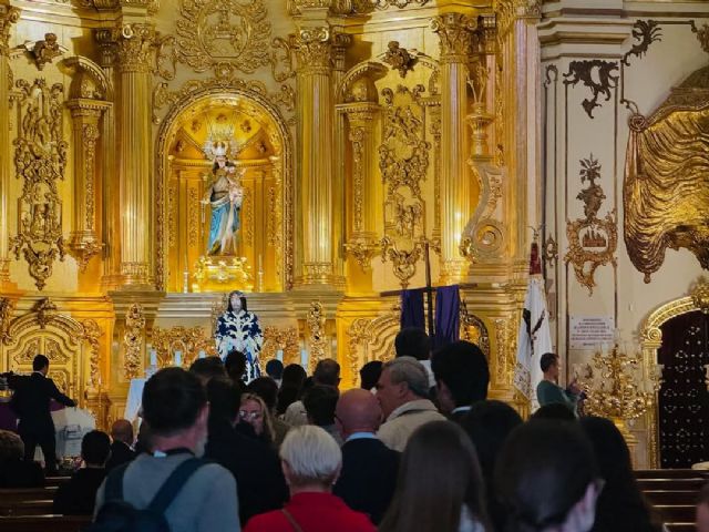 La jornada comenzaba a las 11 horas con un solemne besapié en la Capilla del Rosario y contó con una gran afluencia de fieles que se acercaron para rendir homenaje al Cristo del Rescate. Los blancos destacaban la profunda devoción y el respeto que sienten hacia esta imagen que marcó un hito en la Semana Santa lorquina, y agradecían poder disfrutar de este íntimo momento de recogimiento.
