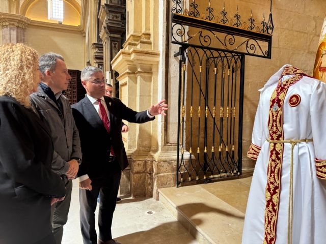 El alcalde de Lorca, Fulgencio Gil Jódar, ha asistido este miércoles a la presentación de los estrenos de la Archicofradía de Jesús Resucitado para la Semana Santa. Concretamente, se trata de una nueva túnica de mayordomo portabandera que acompañará a la bandera de la Archicofradía en la procesión de Domingo de Resurrección por las calles del casco histórico de Lorca.