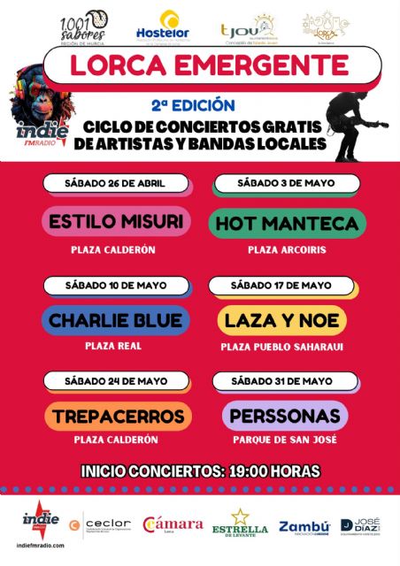 "Desde el Gobierno de Lorca, junto a Hostelor, volvemos a organizar la segunda edición del ciclo de conciertos gratuitos de artistas lorquinos "Lorca Emergente", con el objetivo de seguir dinamizando la hostelería y el ocio en la ciudad, a la vez que apoyar el talento y el esfuerzo de jóvenes bandas y cantantes locales, dándoles la oportunidad que merecen". Así lo ha anunciado este miércoles el concejal de Talento Joven, Antonio David Sánchez, junto al presidente de Hostelor, Jesús Abellaneda, durante la presentación de esta iniciativa que se llevará a cabo desde este sábado 26 de abril hasta el último sábado del mes de mayo.