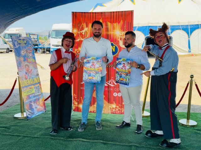 El concejal de Talento Joven del Ayuntamiento de Lorca, Antonio David Sánchez, ha anunciado este viernes la llegada a Lorca del Circo Berlín, que por primera vez instalará su gran carpa climatizada junto al Centro Comercial Parque Almenara. El espectáculo, titulado "Adrenalina", se podrá disfrutar desde este viernes, 30 de mayo hasta el lunes 9 de junio.