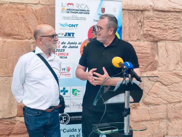 Lorca se convertirá del 12 al 15 de junio de 2025 en sede de la décimo primera edición de los Juegos Nacionales de Trasplantados que reunirá a deportistas trasplantados, donantes vivos y personas en tratamiento de diálisis llegados de toda España. Este importante evento deportivo está organizado por la 'Asociación Deporte y Trasplante España' con un doble objetivo: fomentar la práctica de la actividad física entre las personas trasplantadas como terapia para su rehabilitación; y rendir tributo a las personas donantes y a sus familias, ya que gracias a su solidaridad contribuyen a salvar vidas y a brindar segundas oportunidades a personas de todas las edades. La Plaza de España ha acogido este martes la presentación de la prueba a cargo del concejal de Deportes, Juan Miguel Bayonas, y del tesorero de la asociación organizadora y fundador de la misma, el lorquino Mateo Ruiz.