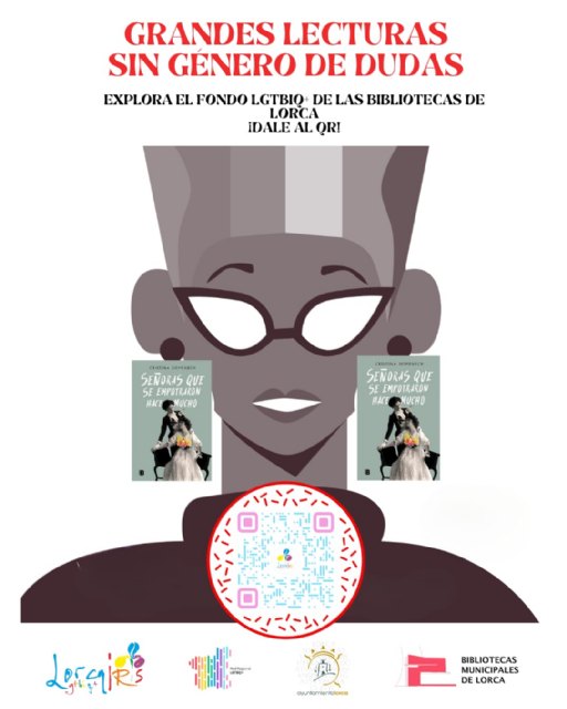 Además, se ha presentado el cartel con el lema “GRANDES LECTURAS SIN GÉNERO DE DUDAS”, acompañado de un código QR dinámico. Esta herramienta, elaborada por Lorcaíris, permite acceder de forma sencilla al catálogo LGTBIQ+ y se actualizará periódicamente para incluir tanto los fondos disponibles en la red de Bibliotecas de Lorca como los propios de la asociación, con el objetivo de construir un espacio virtual de consulta, recomendación y acceso a la literatura diversa.