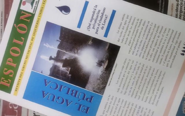 El edil de izquierdas afirma que las familias de Lorca, al menos una buena parte de ellas, ya no pueden asumir más subidas de los recibos como la que nos castiga desde principios de año, cuando los recibos de agua subieron, otra vez, un 3,5%. Pagamos el agua como si fuese "Ribera del Duero", y, concluye Sosa, me consta que son miles las familias de lorquinos que tiemblan cada dos meses, cuando llega a casa el recibo del agua.