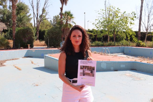 La concejala socialista Irene Jódar ha comparecido esta mañana en el complejo deportivo Ginés Antonio Vidal Ruiz, en la zona de la piscina de verano de La Torrecilla, para denunciar el estado de abandono absoluto en el que continúa esta instalación municipal. "Nos encontramos ante una piscina que data de los años 70 y cuya situación actual es de 'ruina inservible' como ya catalogó Fulgencio Gil en 2023. Lo grave no es solo su deterioro, sino que hace dos años fue el propio Fulgencio Gil quien prometió rehabilitarla 'de inmediato' al llegar al gobierno", ha recordado Jódar.