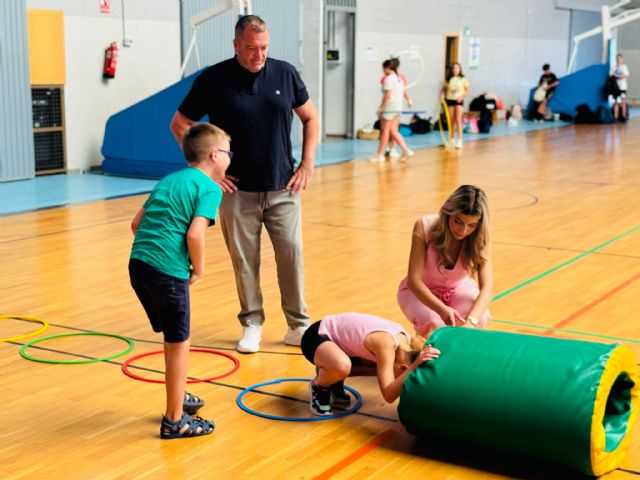 La Escuela de Verano de Actividad Física y Ocio (EVAFO), organizada por la Concejalía de Deportes del Ayuntamiento de Lorca, acoge este verano, por segundo año consecutivo y tras los buenos resultados de la pasada edición, a un grupo de niños con Trastorno del Espectro del Autismo (TEA) gracias a la colaboración con la Asociación Astrade. En total, ocho menores participan desde el pasado 25 de junio en las actividades que se desarrollan en horario de mañana en el Complejo Deportivo Felipe VI, compartiendo experiencias con el resto de menores. Los concejales de Deportes y de ONG's, Juan Miguel Bayonas y Belén Díaz, respectivamente, junto a representantes de Astrade, han visitado a los pequeños y a sus monitores mientras realizaban actividades junto a los 131 niños y niñas que forman parte de EVAFO 2025.