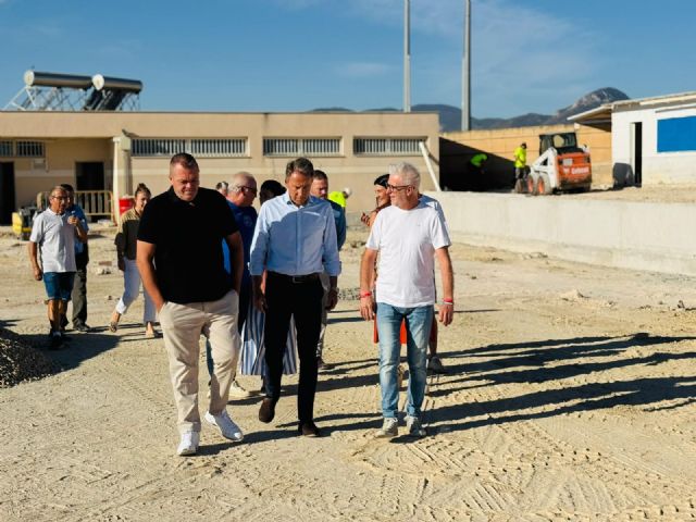 El alcalde de Lorca, Fulgencio Gil Jódar, junto con el concejal de Deportes del Ayuntamiento de Lorca, Juan Miguel Bayonas, y representantes vecinales han comprobado hoy de primera mano el estado actual de la instalación deportiva municipal a la que también se está dotando de graderío, nuevo sistema de regadío y drenaje, vallado perimetral, y un nuevo sistema de iluminación. Además, también se están reparando las zonas de los aseos y la cantina. El presupuesto de la actuación se aproxima a los 500.000 euros y, una vez finalizada, supondrá un revulsivo para las tierras altas de Lorca y para el fomento del deporte base en los núcleos más alejados del casco urbano.