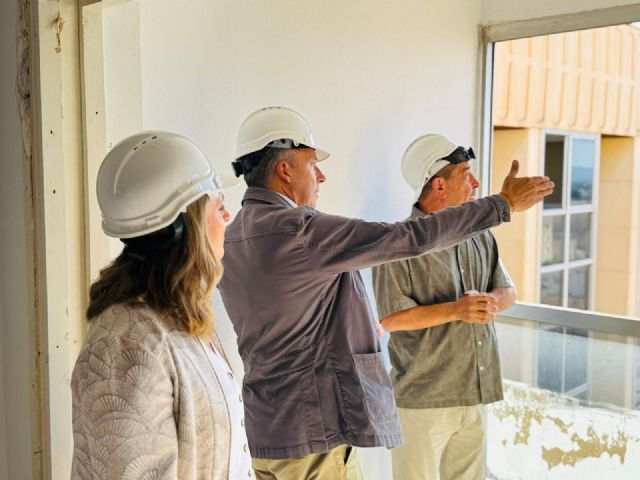 El alcalde de Lorca, Fulgencio Gil, junto con la Consejera de Política Social, Conchita Ruiz, ha supervisado esta misma mañana el comienzo de las obras de rehabilitación y reforma de las plantas 7 y 8, lo que permitirá además de la optimización del inmueble, la habilitación de 36 nuevas plazas