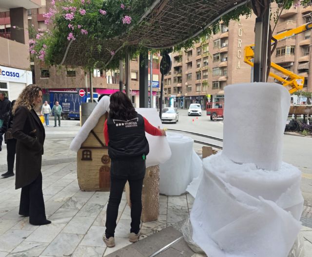 La edil de Ferias y Fiestas del Ayuntamiento de Lorca, María de las Huertas García, ha informado de que, este lunes, ha dado comienzo el montaje de la nueva y llamativa decoración navideña de la Plaza del Óvalo, una propuesta artística completamente artesanal diseñada para convertirse en uno de los principales atractivos de la Navidad lorquina.