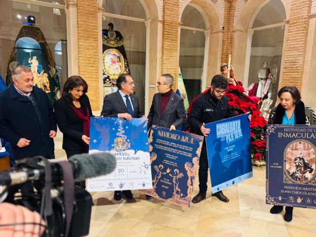 El edil de Cultura del Ayuntamiento de Lorca, Santiago Parra, acompañado del presidente de la Hermandad de Labradores, Paso Azul, Miguel Ángel Peña, han presentado el calendario de actividades que esta cofradía llevará a cabo durante esta Navidad, bajo el nombre de "Navidad Azul". Con una propuesta amplia, variada y pensada para todas las edades, esta programación refuerza la oferta navideña del municipio, dinamizando estas fechas señaladas con tradición, cultura, solidaridad y fervor.