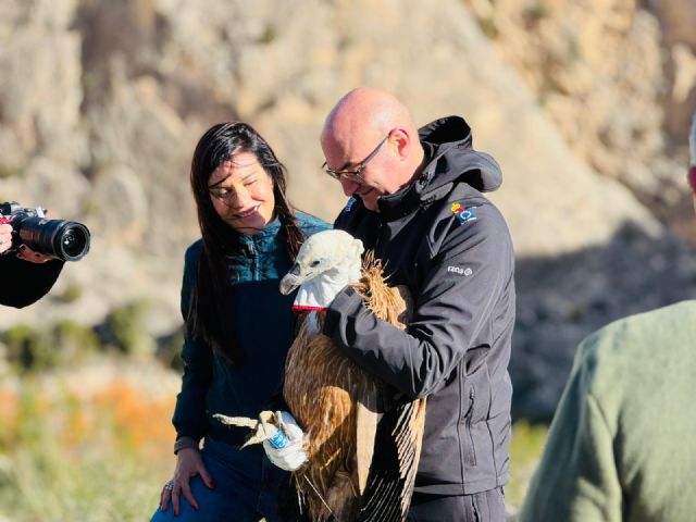 El presidente del Gobierno de la Región de Murcia, Fernando López Miras, ha llevado a cabo hoy en las inmediaciones del embalse de Valdeinfierno, en Lorca, junto con parte del Gobierno Municipal, la liberación de tres ejemplares juveniles de buitre leonado recuperados en el Centro de Recuperación de Fauna Silvestre de El Valle. Dichos ejemplares fueron encontrados en distintos puntos de la Región de Murcia, desnutridos y con diferentes lesiones.