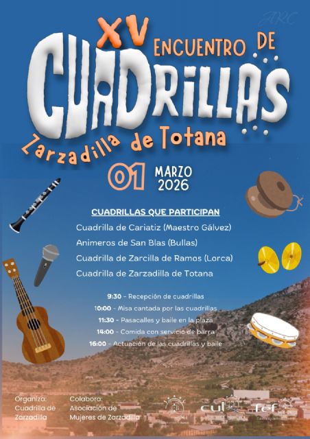 El XV Encuentro de Cuadrillas está organizado por la Cuadrilla de Zarzadilla, con la colaboración de la Asociación de Mujeres de la pedanía, y cuenta con el respaldo institucional del Ayuntamiento de Lorca, que reafirma así su compromiso con la promoción y difusión de las tradiciones locales.