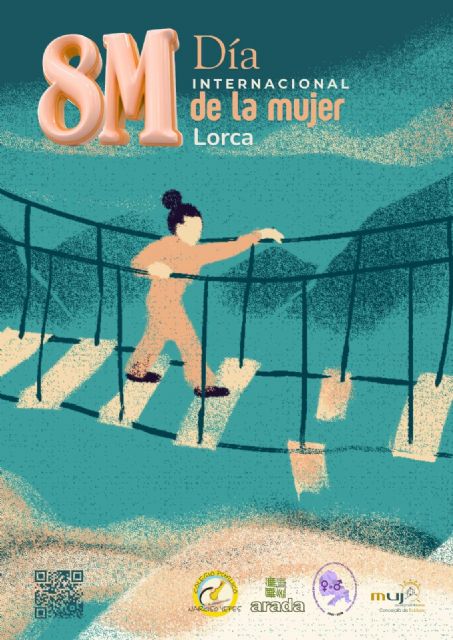 Este año, el cartel visualiza la imagen de una mujer caminando sobre un puente colgante como metáfora visual de los desafíos, desigualdades y obstáculos estructurales que las mujeres continúan enfrentando en la sociedad actual; todo ello bajo la idea de la capacidad de las mujeres para seguir caminando hacia un futuro más justo, siendo un llamamiento para todos.
